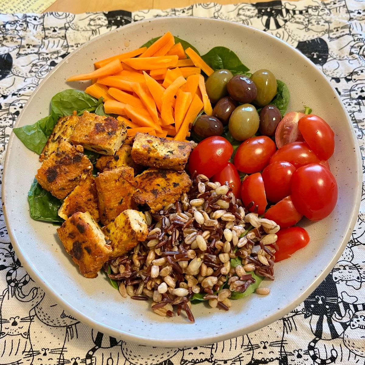 Non il miglior tofu al pomodoro che abbia mai assaggiato (poco saporito) ma accompagnato a olive o pomodori secchi ci sta. Lo preferisco cotto un po’ in padella.