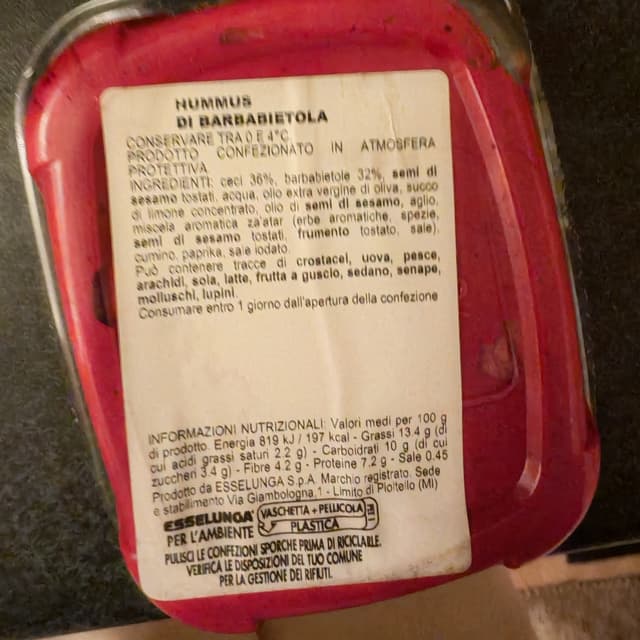 Hummus di barbabietola buono, gustoso.