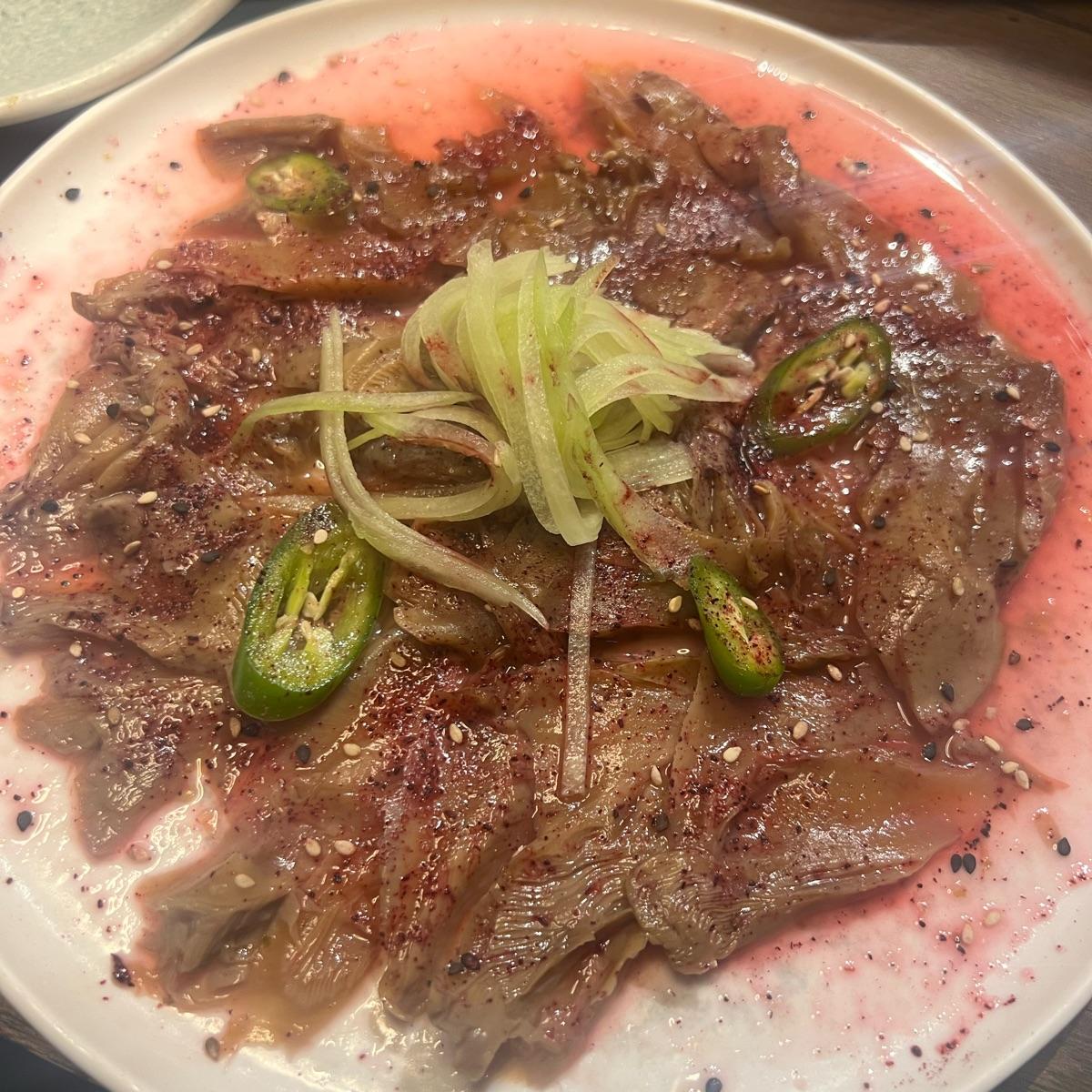 El menú dice que la salsa es de yuzu pero sinceramente no sabe a nada si no PURO limón. Quiero amar este restaurante por lo lindo que es y la creatividad del menú pero los platos simplemente no dan la talla..
