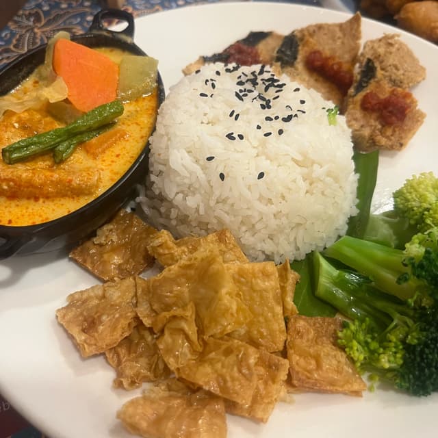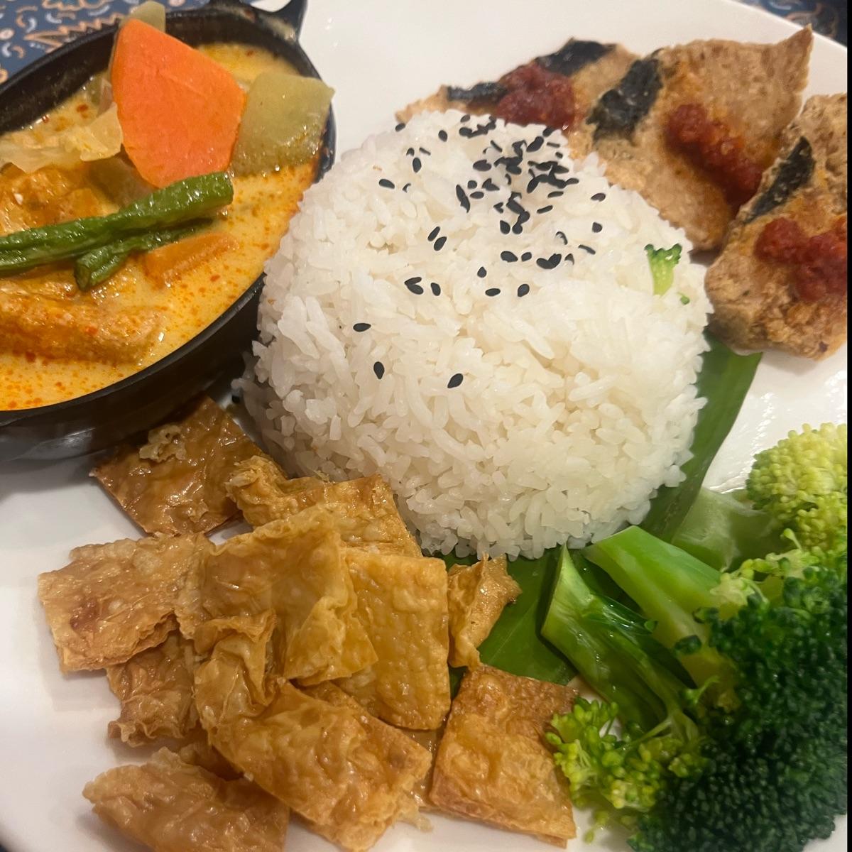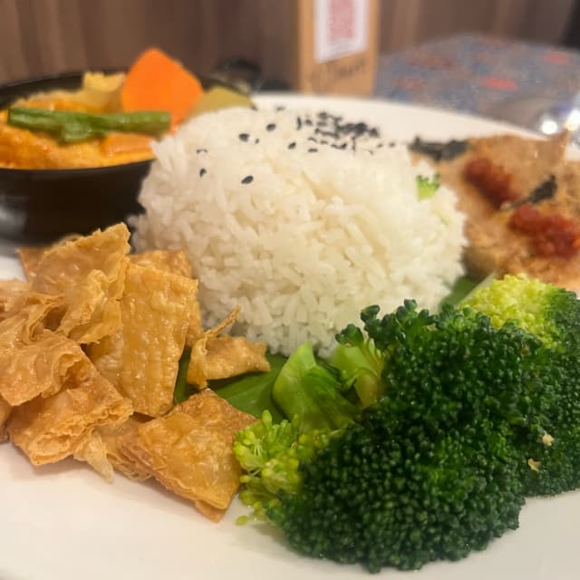 Good ol’ #nasipadang with #sayurlodeh , soy phish topped with a beautiful #balado sauce, broccoli and #beancurd skin. Tight.
