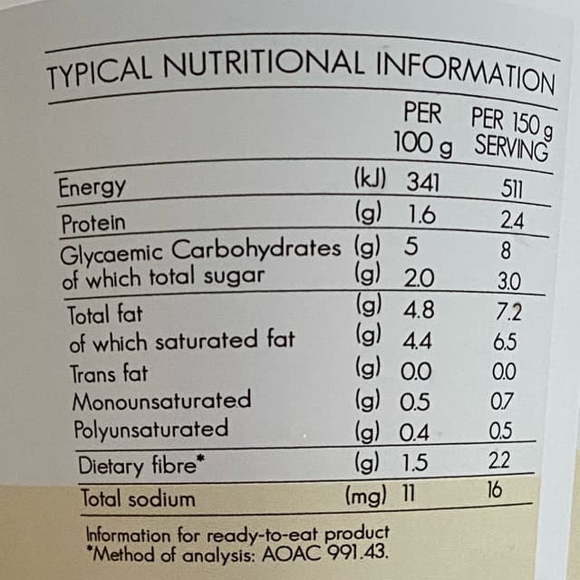 This coconut milk based yoghurt is smooth, creamy and not tangy. Love the subtle vanilla flavour. This is my favourite yoghurt from the buttanut range.