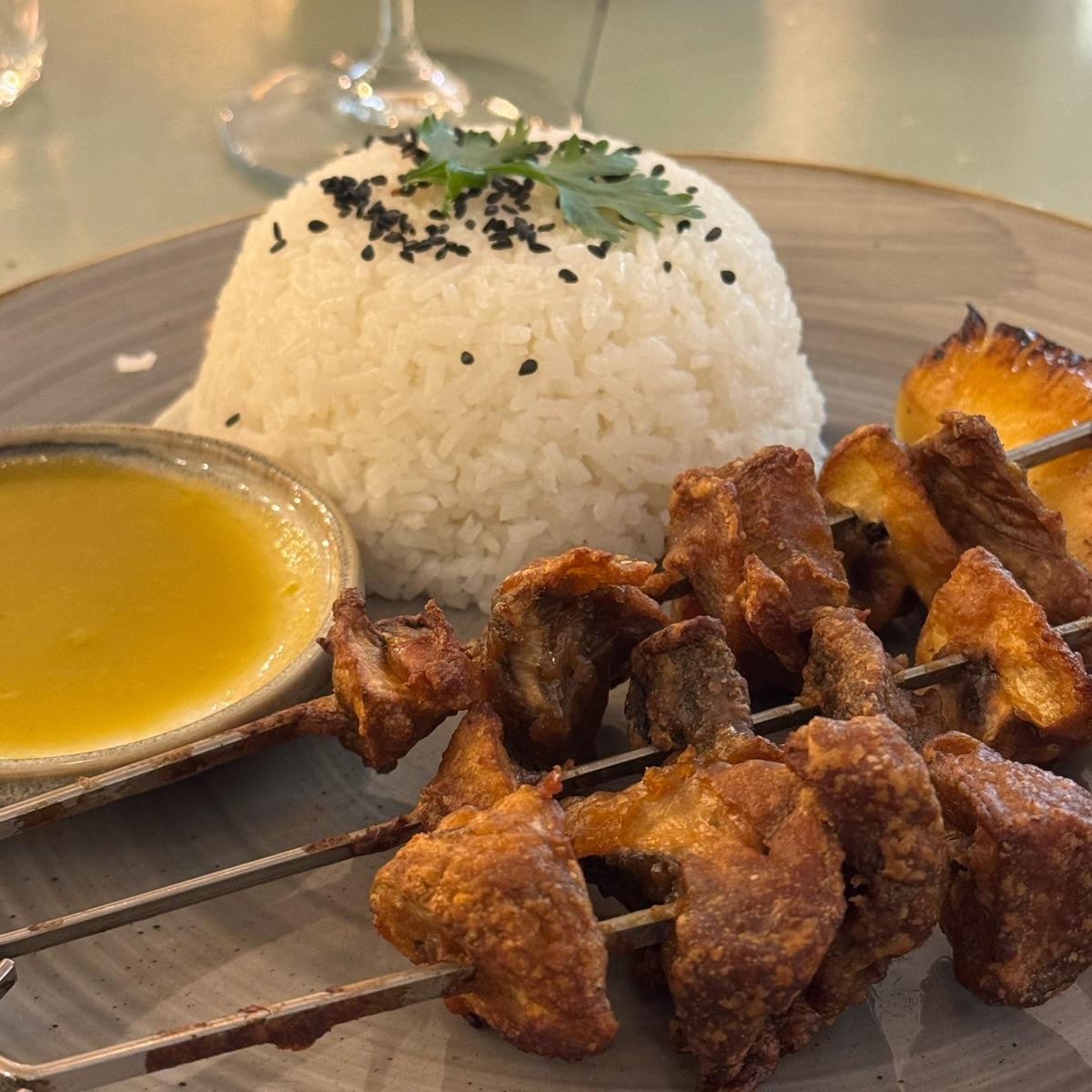 una bomba😍 i funghi croccanti e saporitissimi, mi sono piaciuti tanto. Il riso buono, la salsa per me piuttosto piccante ma comunque fresca e buona. Ottimo!14€💰