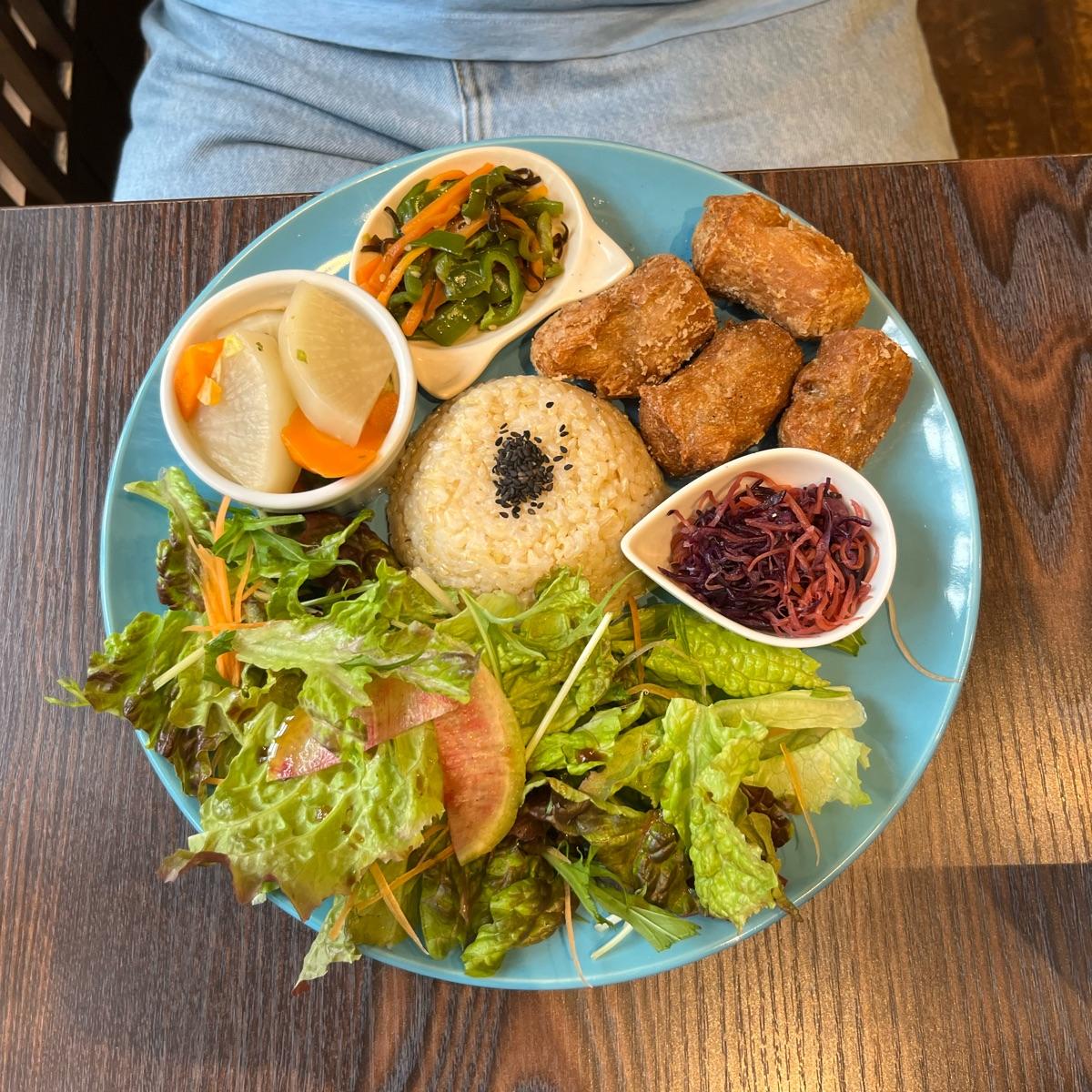 This was another dish available at the cat shelter and vegan cafe Neu in Osaka. It’s very similar to the other dish with the exception that the soy meat is seasoned with salt and pepper and not with the sweet and savory sauce. As you can see there’s also a good amount of fresh veggies, which is always nice to have. I would definitely recommend visiting this place and supporting them also considering everything they do for the stray cats.