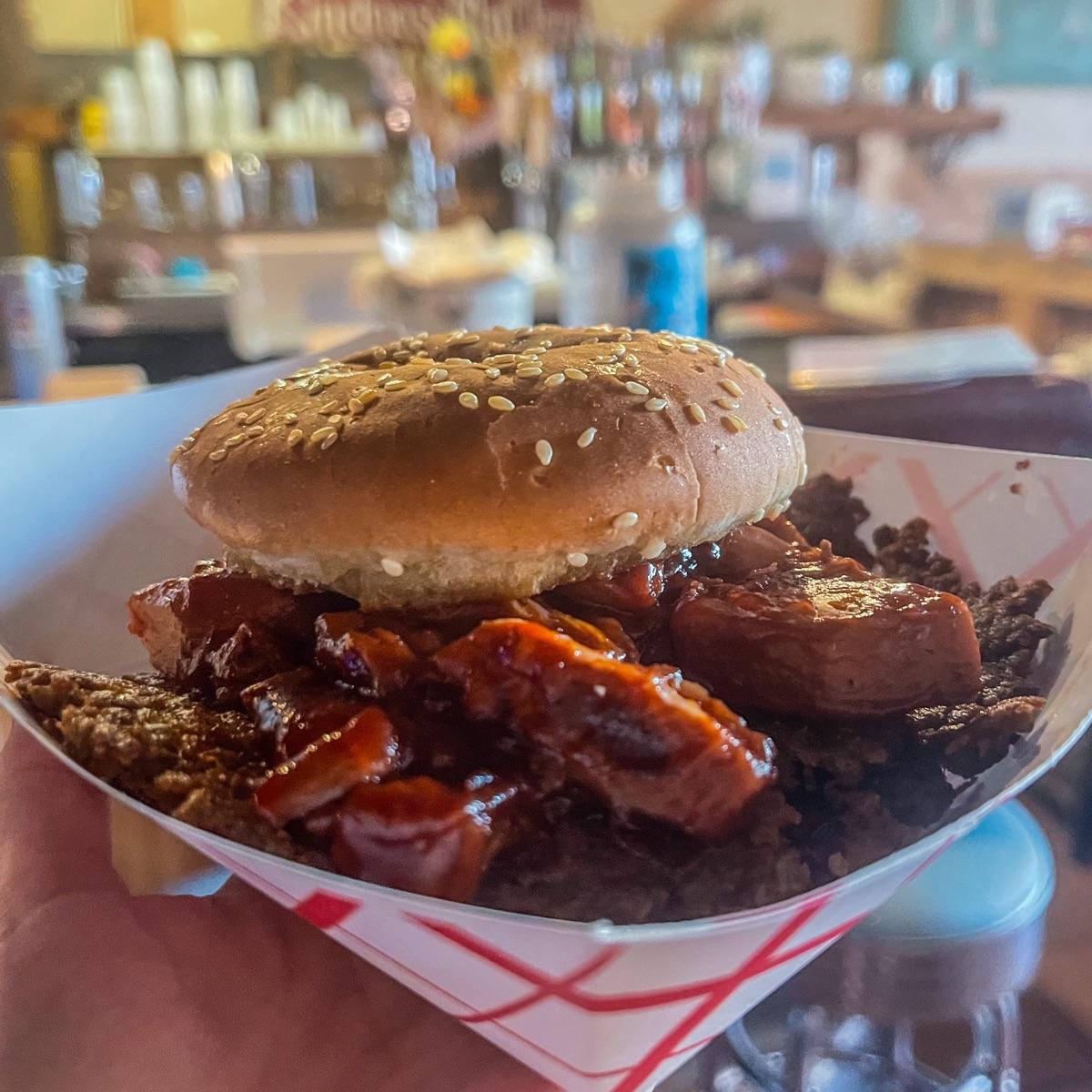like my sandwich, my sister also found her Pulled Porc Burger disappointing. she enjoyed the housemade smash patty but most of the flavor came from the pulled porc jackfruit which has a decent bbq flavor but also just isnt the best. 🍔 #saveveganrestaurants