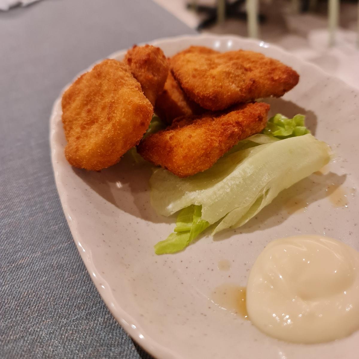 #konjac #chicken #nuggets pricey ($6.50) with only 5 instead of the market trend 6 but good while it lasted 🥹 radiating #scallop -y vibes minus the kill and humphh.. surprisingly soft (for konjac) 🤔
