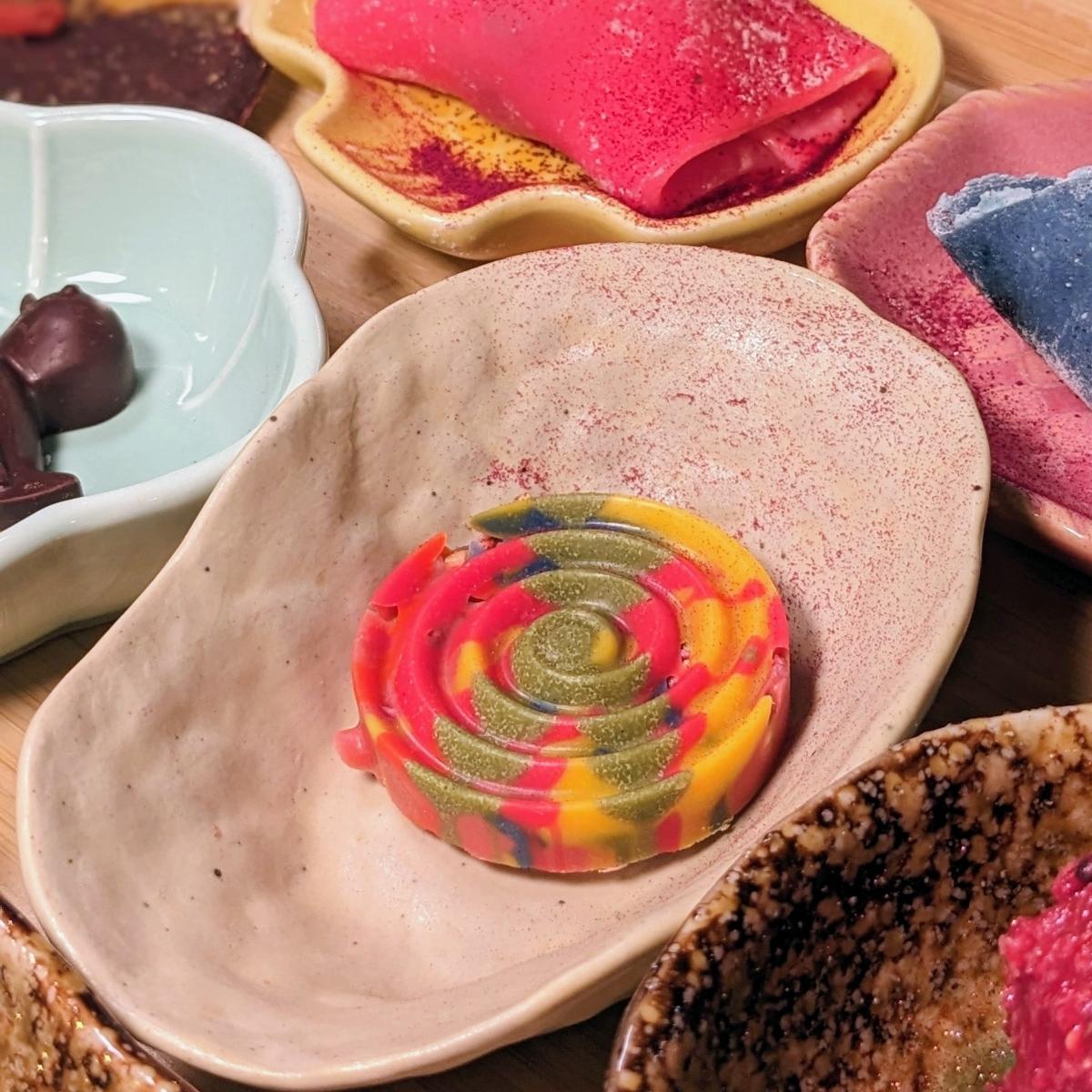 Tempered vegan chocolate infused with shichimi spice mix including chilli pepper, sansho pepper, and sesame seeds! 🍫🌶️ Amazed by how the house-blend of Japanese chilli spices cut through any cloying richness while simultaneously accentuating the chocolate aroma. Great rich dark cacao flavour with a hint of rum. Also loved how this colourful artisan handmade chocolate looked like a work of art! 🎨🌈 One of the sweets in the new Vegan High Tea Dessert Omakase~ (Anniversary promo $128+ / pax till Aug 2025 ✨ U.P. $148 / pax) #sgvegan #womenowned #glutenfree #lowsugar #wholefoodplantbased #wfpb #sgdessert #chocolate #veganchocolate