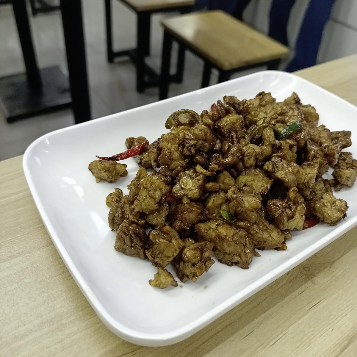 Looking like fried carrot cake from afar, only nutritionally richer with #soy on #soya winning combo, namely #tempeh wokked with taoco 豆瓣酱 (fermented #soybeanpaste ). Salty though