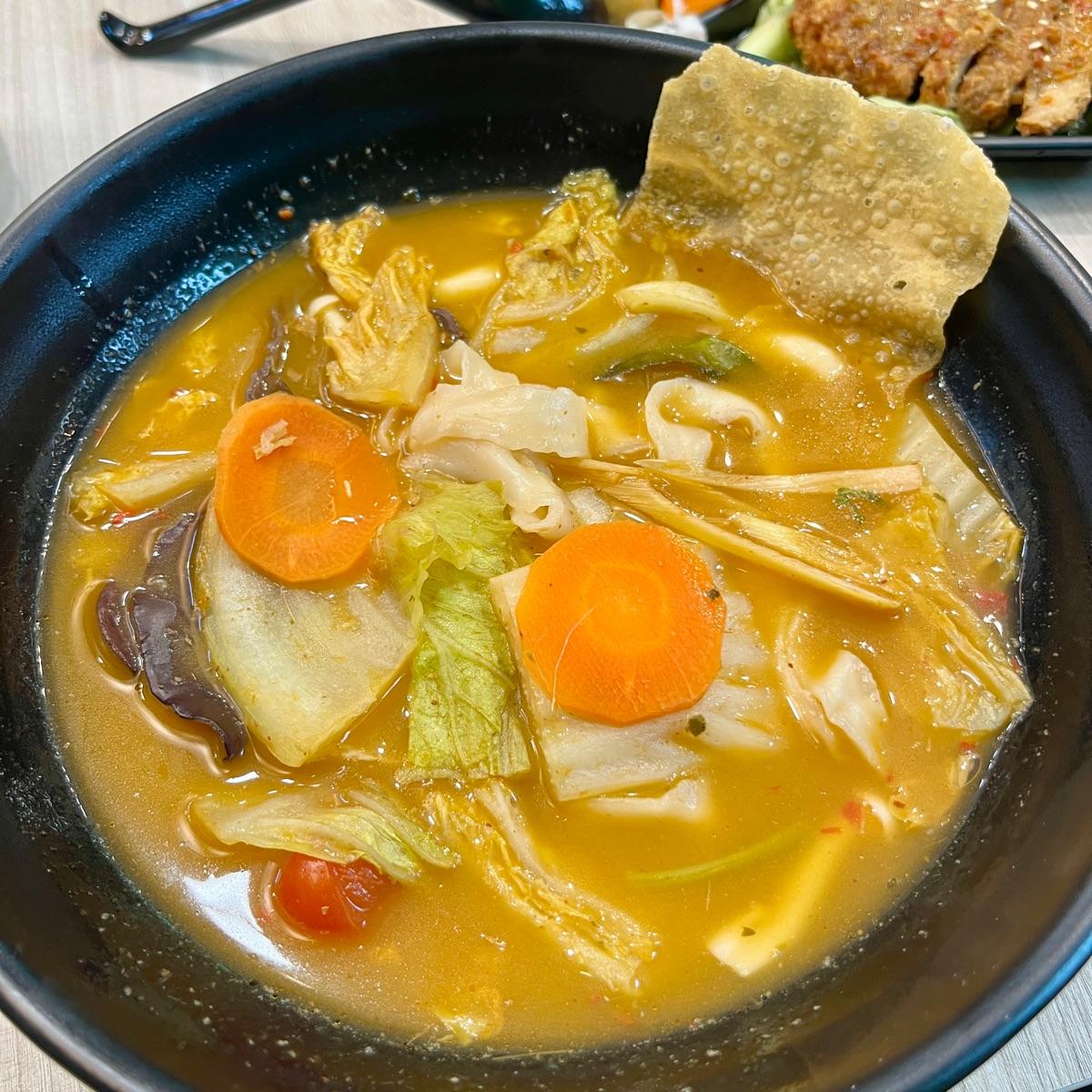 Broth was very spicy and tangy. Only issue I have with this was the lack of protein. It's just a bowl of noodles, napa cabbage, some carrots, mushrooms and a piece of wanton skin (not even a piece of yuba) and it cost $7.