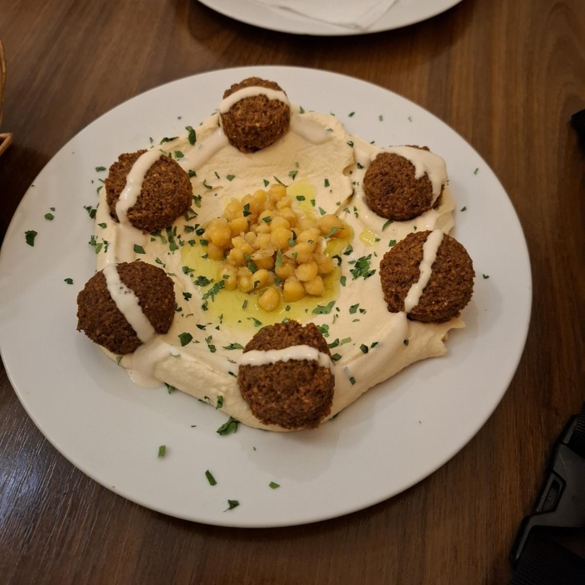 L'hummus è sicuramente uno tra i più buoni mangiati ultimamente, liscio come una pomata e ricco di tahina. Anche i falafel sono molto buoni, con una crosta croccante e l'interno morbido e per nulla secco, non troppo speziati.