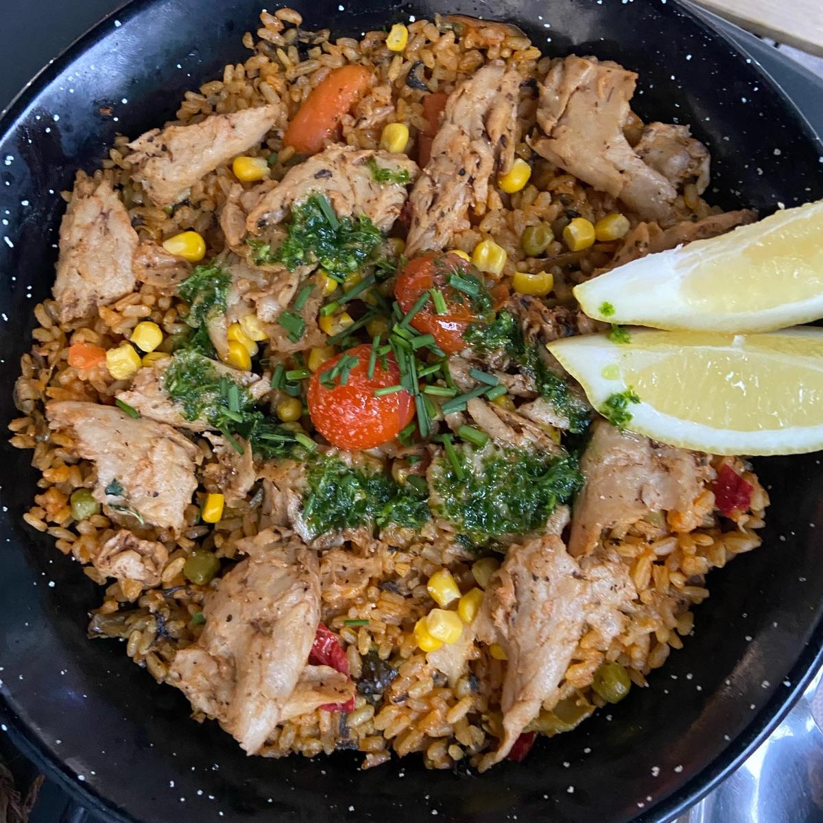 Grazie per la recensione! Siamo felici che ti sia piaciuta la nostra paella valenciana veg con il pollo Heura,. Prendiamo nota del tuo feedback sulla cottura del riso e lavoreremo per renderla ancora migliore. Torna presto!