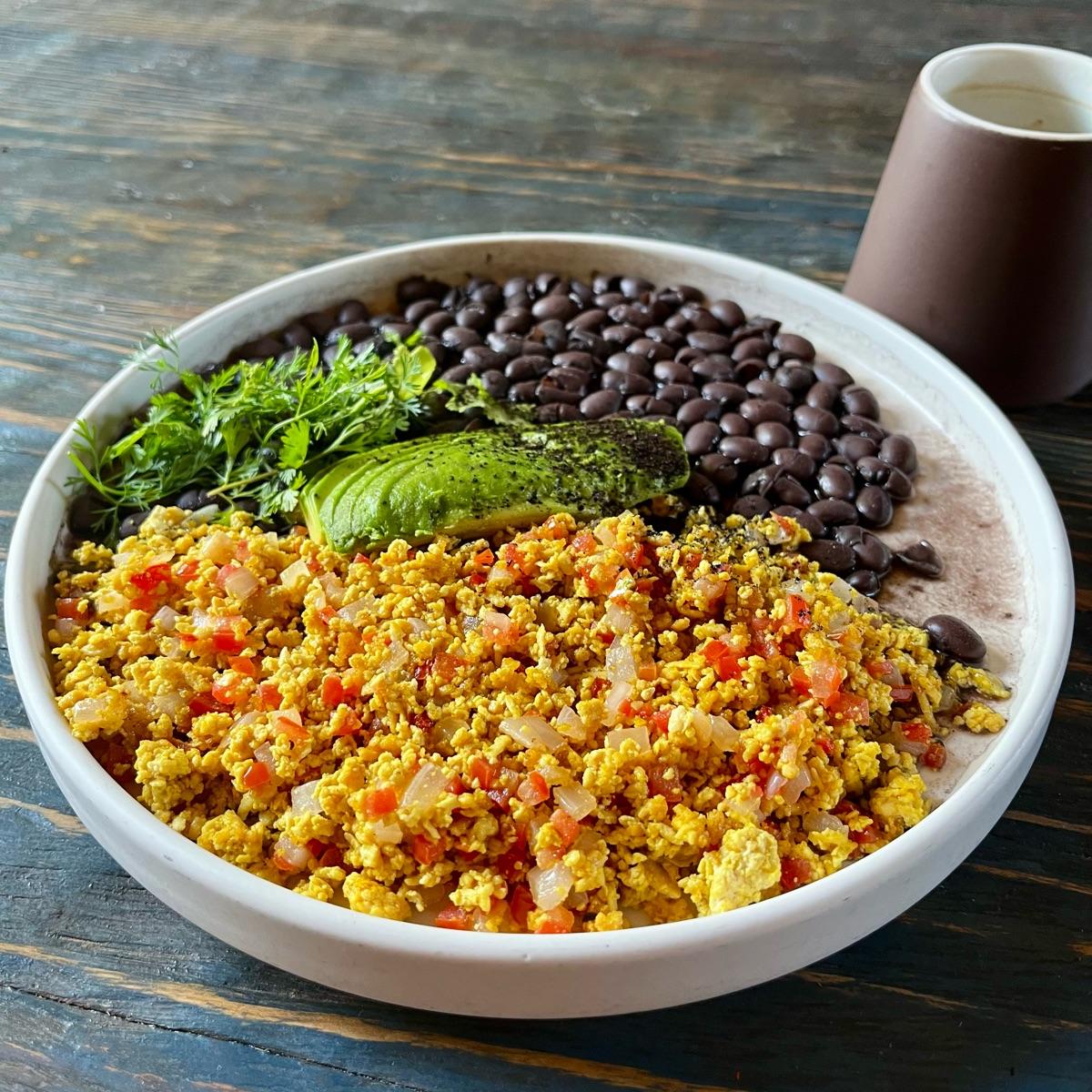 A pesar de que el restaurante no es vegano, les quedó muy rico el #tofu a la mexicana preparado con jitomate y cebollita. Los frijoles negros de la olla muy sabrosos y el aguacate 🥑 súper fresco, también incluye sus respectivas tortillas 🤩. Todo muy rico y la procion adecuada. También lo recomiendo ☺️ #eggismurder #tofulover #blackbeans #avocadolover #bekind