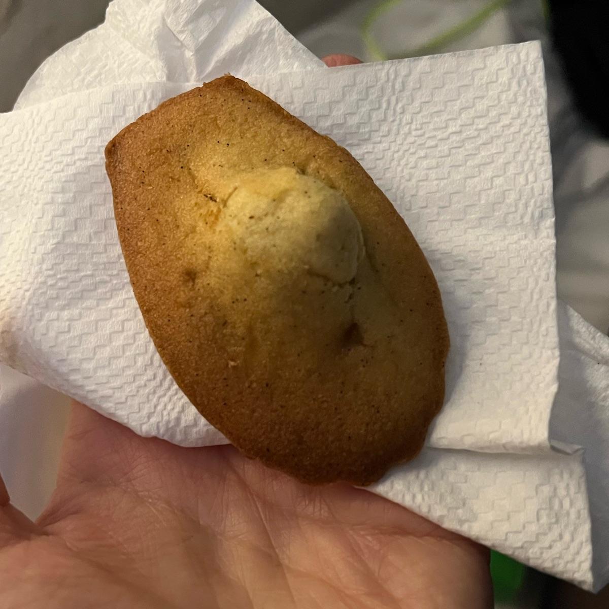 La foto è un po bruttina perché l ho comprata da portare via e mangiata per merenda ahah in ogni caso era veramente buonissima si vede che gli ingredienti usati in questa pasticceria sono di altissima qualità. Era pieno di puntini di vaniglia che rendevano questa Madeleine veramente speciale. O,9€ l una