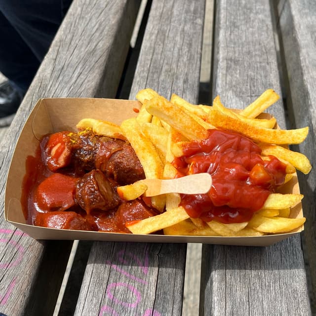 Really good vegan Currywurst - crispy sausage, lots of sauce and available with crispy fries. Very good value from this takeaway.