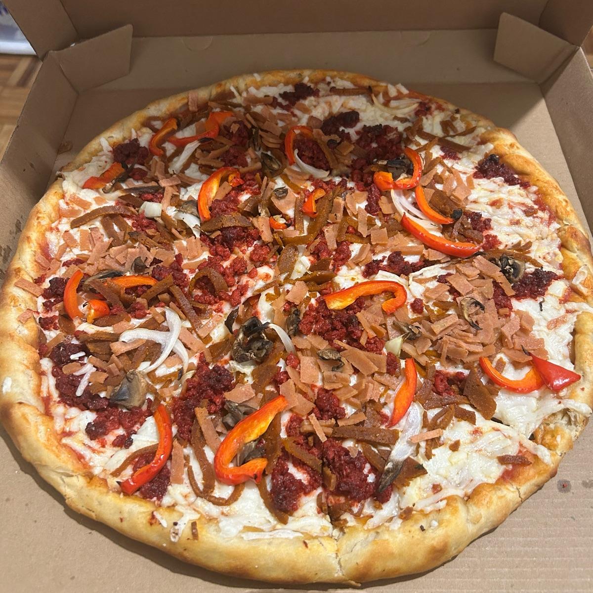 I liked this vegan meat alternative pizza. It had chorizo, ham, pepperoni, mushrooms, red bell peppers and onions. I only wish they added tomato sauce! I don’t get why they don’t do this at this pizza place.