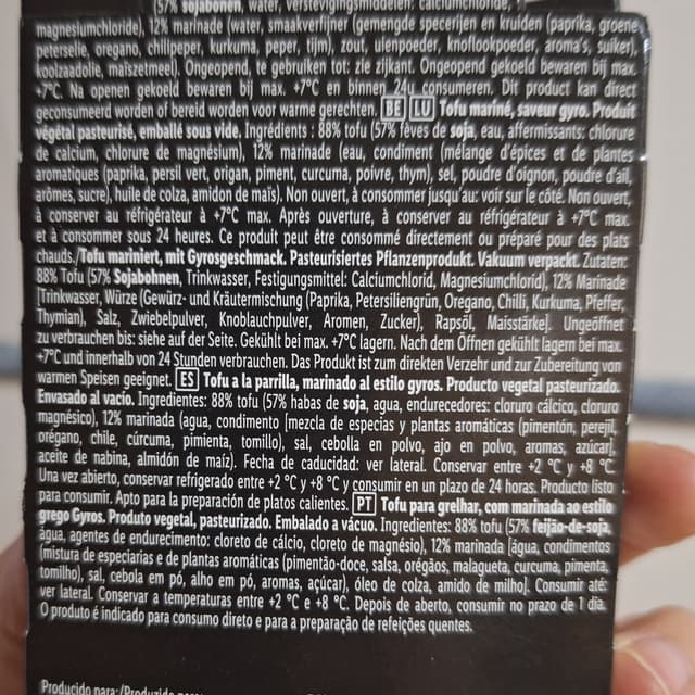 Bloque de tofu con marinado tipo carne griega, súper rico, me ha encantado. Lo volveré a comprar.