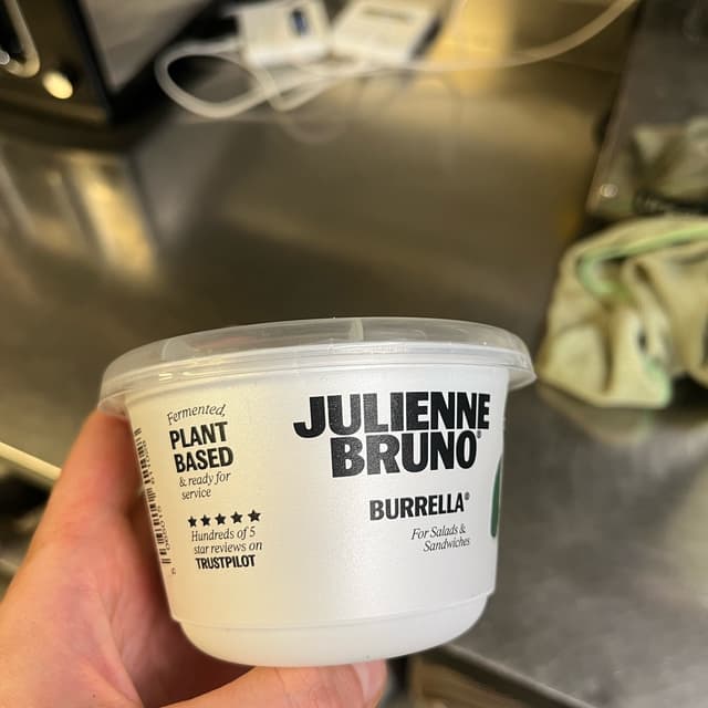 Vegan burrata!! I’ve never tried the dairy version so can’t compare the two but this was as creamy and thick as I was expecting. Quite pricey but definitely worth it for an occasional treat