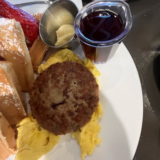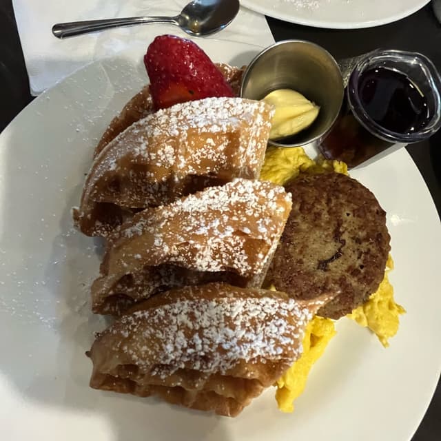 Waffle combo is pancakes but more expensive due to cook time? Or something it’s good like a sandwich and dip it. I made a mess. Can’t wait to eat it everyday. I wish. $25 or something with tip and $19.25 regular.