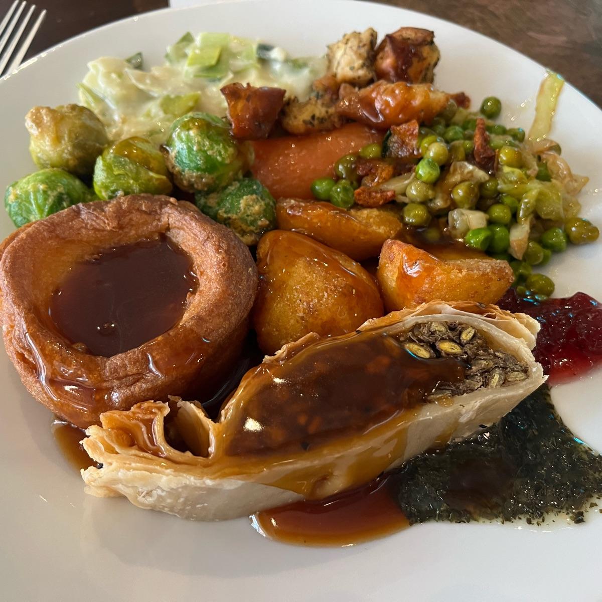 🌱Unity Diner have reopened amazingly and their new Sunday carvery is a roaring success. 🎉🎊Even by myself they struggled to sneak me in at 5pm. You get a choice of 5 mains. I got the mushroom 🍄‍🟫Wellington but it was super difficult to choose. You get one #yorkshirepuddings and then can eat as much as you want of all the sides which you help yourself to. Maybe I came at a bad time but many things seemed empty or nearly empty and it wasn’t the greatest presentation then. I went back for #cauliflower cheese which was one of the things I really wanted to try. It was all really nice but I don’t think I’ll be racing back to have this again. It’s £21.99 for the Sunday carvery. I’m so happy they have reopened though and would love to go back for other things like the sticky toffee pudding. 😋 #saveveganrestaurants #veganrestaurant #veganlondon #londoneats #sundayroast
