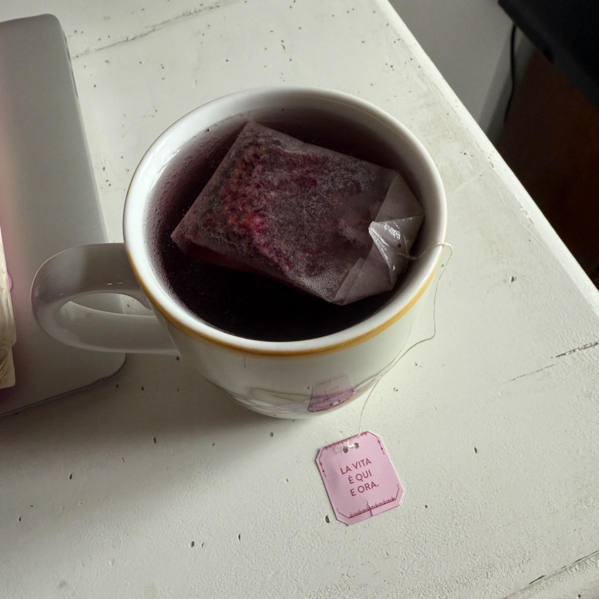 ho scoperto questa linea della pompadur solo ora e all’Esselunga per adesso trovo presenti solo questa che è risveglio dei sensi e quella rilassante. È buonissima, vi ho fatto la foto proprio della tisana, perché diventa letteralmente viola. Mi piace tanto perché rimane in delicata ma con sapore fruttato e speziato ottimale. La cosa migliore però è che in ogni bustina si trova una frase diversa ogni giorno.
