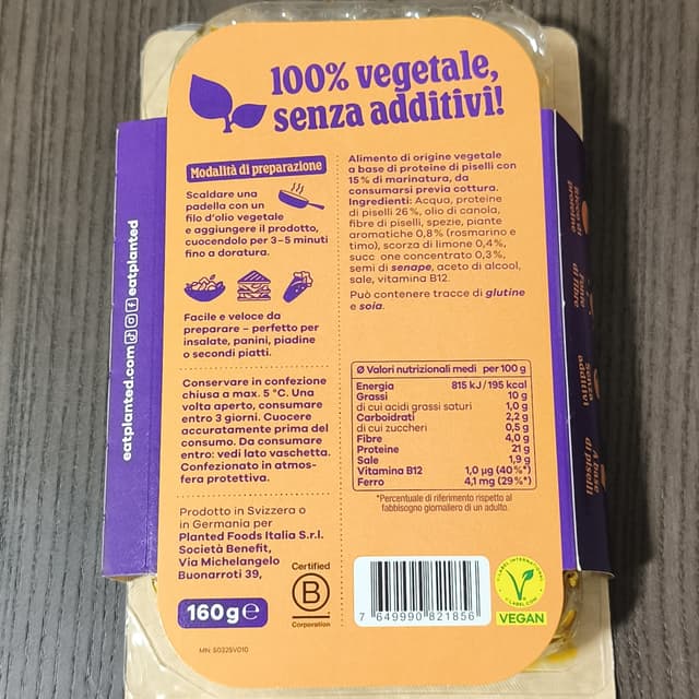 Introducing our plant-based Mediterranean-style bites made with pea protein. These bocconcini are infused with the flavors of rosemary, thyme, lemon zest, and mustard seeds. They are a great source of protein and fiber, free of any additives, and have a savory taste. These bocconcini are easy to prepare and perfect for adding to salads, sandwiches, piadinas, or as a main course. Try them out today and see for yourself how delicious plant-based meat can be.