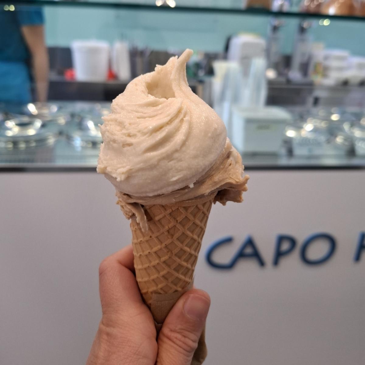 Porzione abbondante ma del resto come il prezzo 🙃 i coni sono vegani, purtroppo però sono quelli leggeri sbriciolosi e non le cialde spesse e croccanti.