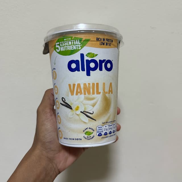 It’s fortified with calcium and vitamins B12 and D, and also contains live cultures. Each 100g serving has around 65 kcal, 2.1g fat, and 3.3g protein. I like that it’s low in fat but still feels indulgent. A really solid dairy-free option if you enjoy vanilla yogurt.
