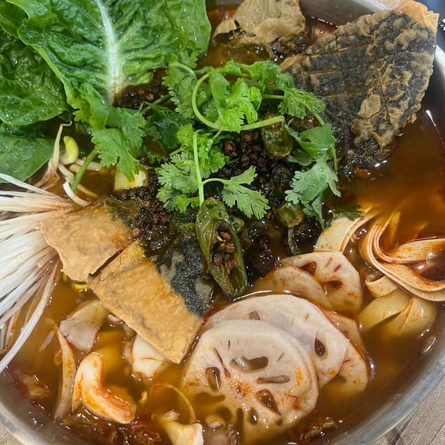 This was 🔥 Soup was so tasty! Loads of veggies, lotus, soy #mockfish , #enoki mushrooms and #tanghoon #glassnoodles #malaxiangguo #mala #veganinsingapore