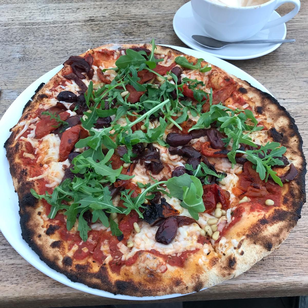 #excellent #tasty #veganpizza with a #generous #addition of #olives, #rocket and #pinenuts. #great #plantfuel for journeys on the North Coast 500!