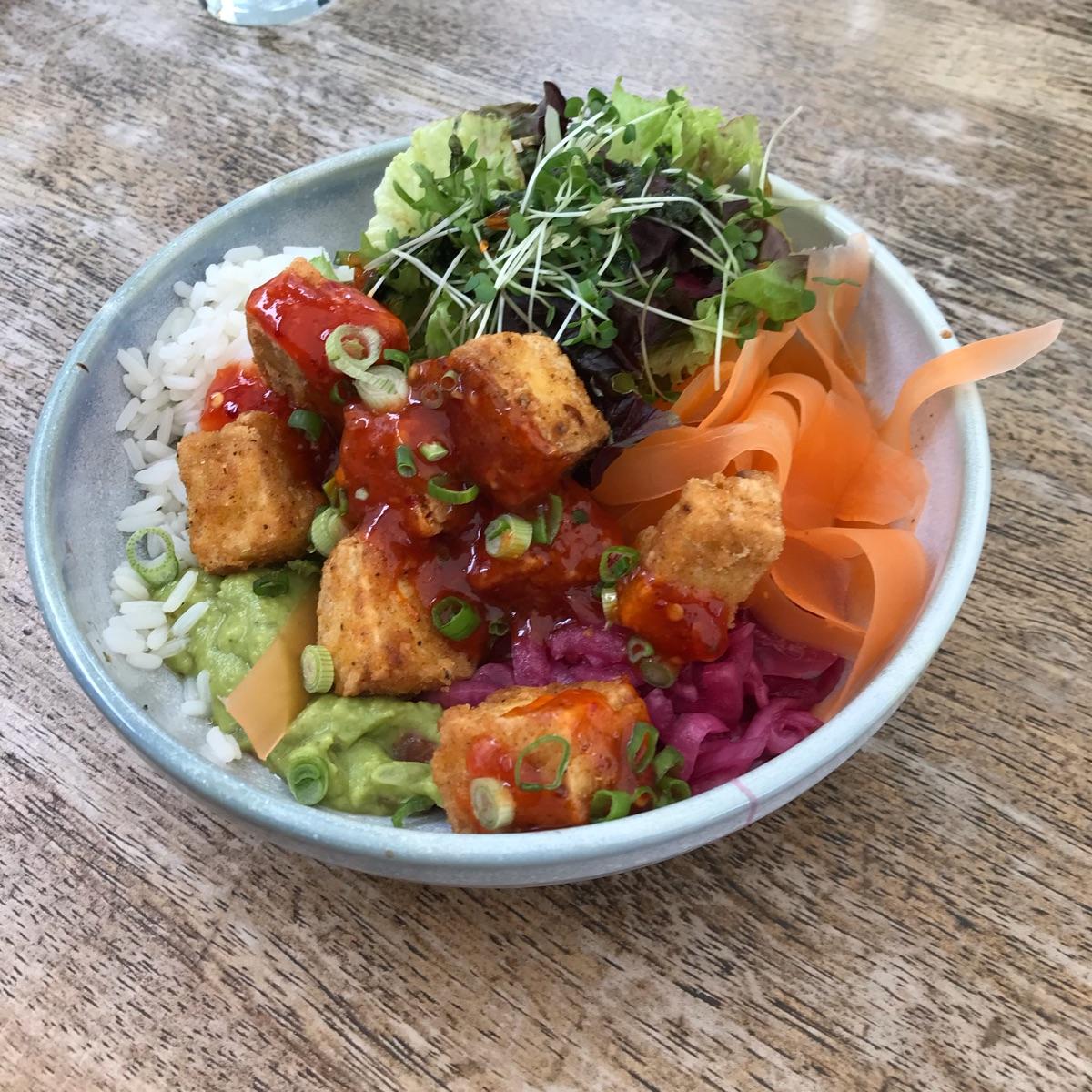 #nice #tofu #pokebowl with all the bells and whistles. Not the biggest fan of #pickledvegetables myself but the #friedtofu and #rice are still packed with #delicious #flavour.