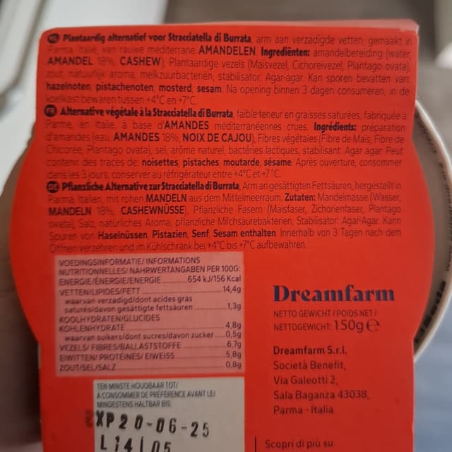 I really liked this stuff. I put it on wraps with cucumber and tomato for dinner. I don't think I have ever had burrata, so not sure if it tastes anything like it, but the taste is good.