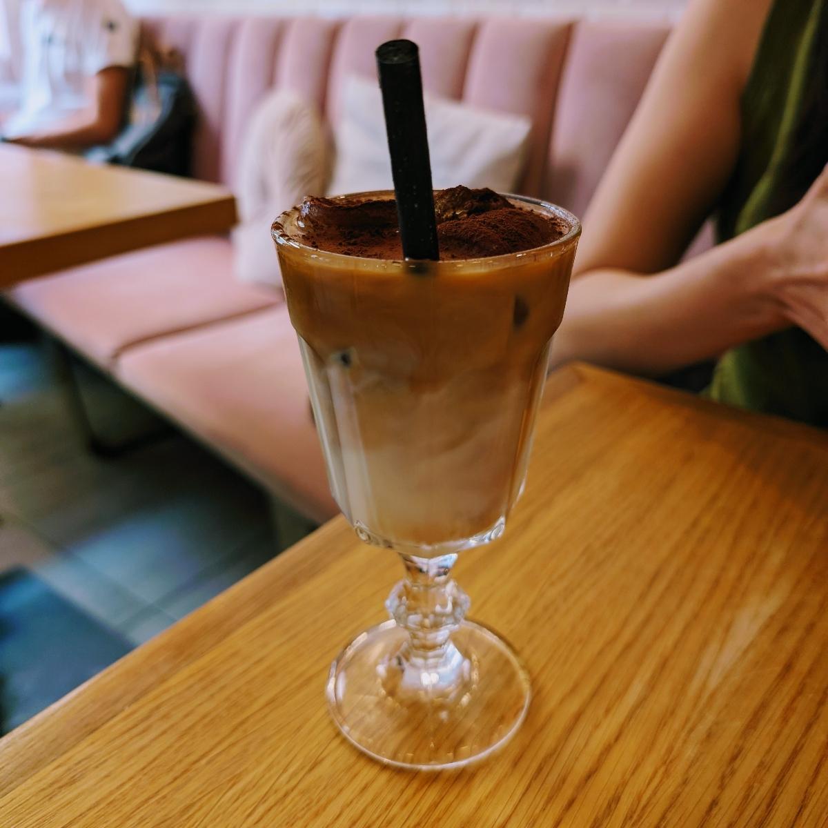 Just round the corner from the hotel where we were staying, which was handy when we didn't want an overpriced, omnivore-centric buffet ordeal 😏 Again I was familiar with this place from last year (read: I chose this year's hotel in order to be close to this place 😉), so I gladly jumped at the chance to order some seasonal specials like this #dirtylatte (with #earlgrey instead of chai as the little twist) The place is all vegan, so no need to worry about milk/mylk - #oatmilk is the default for all the coffee/tea items, but I think you can ask that they switch to coconut 🙂 Love the presentation, but yeah that glass is a bit tiny so the portion runs out on you rather quickly ☹️
