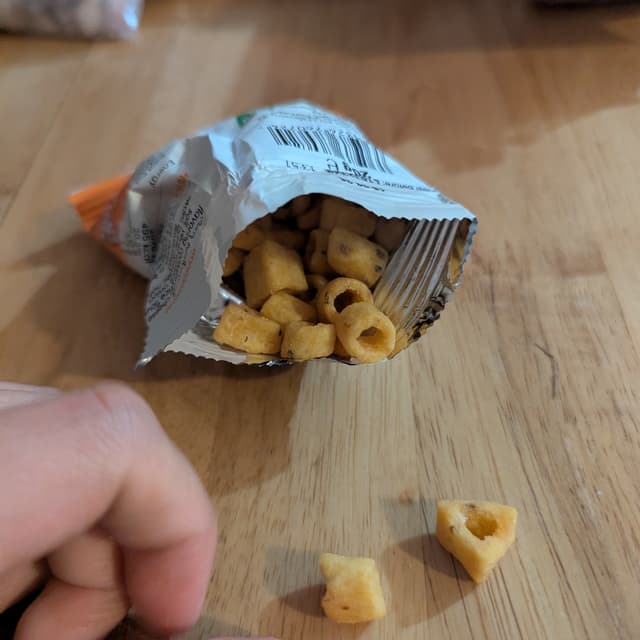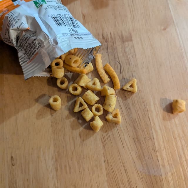 Yummy crunchy cheesy, addicting fun shapes too. Can be dry tho
