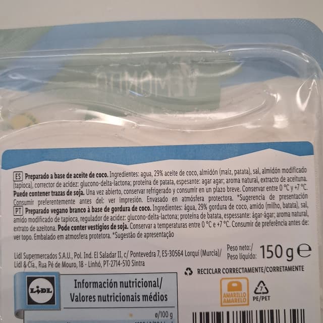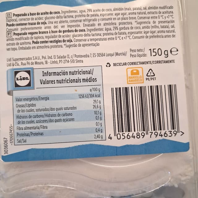 This is #lidl's version of #greekstyle #vegancheese that randomly appeared in the store last week. It is a pretty good version of #feta flavorwise, though I think I prefer the Violife Greek white version. It crumbles slightly while being creamy but texture-wise doesn't hold up to much more than that. Not much to offer nutritionally, however that applies to most vegan cheeses I've seen. I do appreciate Lidl's effort, as a few months back I wrote them an email about the dwindling range of vegan products, though this is certainly a temporary offer. Priced at 2,39€ for 150g.