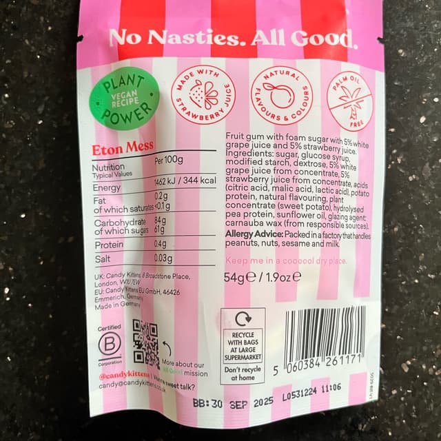 Pleased that Candy Kittens promote their #plantpower vegan credentials on the front of the pack