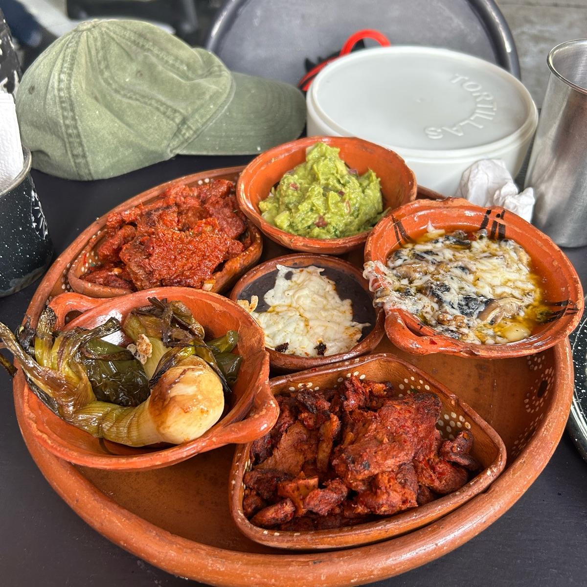 I loved the chorizo and cecina of this combo. They were both wheat based and sided with a mushroom cheese dip, guacamole, grilled chili, onions and refried beans. These are paired with corn tortillas to mix and match individual tacos