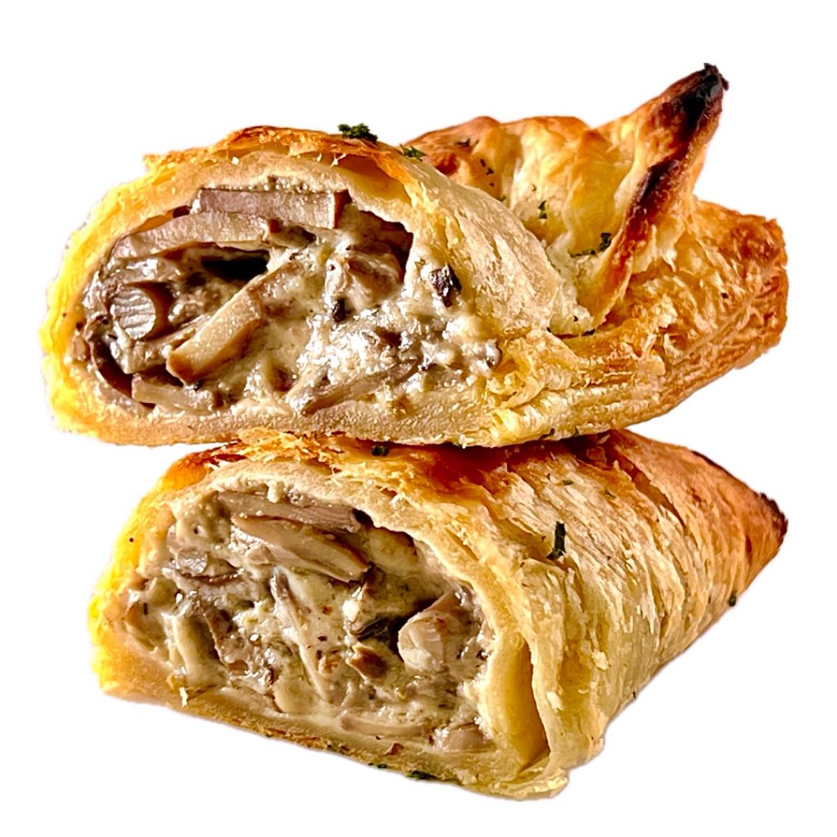 This consisted of buttery, flaky puff pastry stuffed with creamy 🌱-based béchamel sauce and umami-rich mushrooms 🍄‍🟫. It was fabulous.