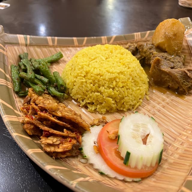 Enjoyed this dish! Rice was fragrant. Rendang was really good! Comes with tempeh, beans, cucumber and tomato on the side. Would order again! Love the Peranakan deco in this restaurant!