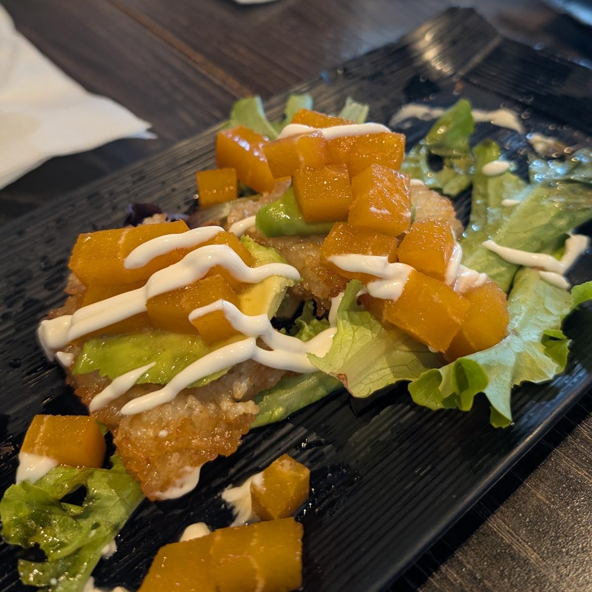 Ooh interesting salmon sashimi! I'm not sure what it was made of - it reminded me of fruit and it was pretty firm but chewy. The deep fried rice gave a good crunch.
