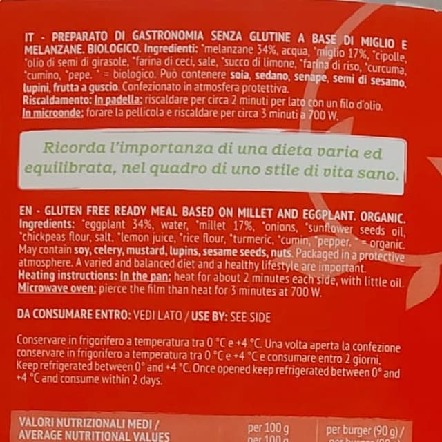 Burger vegetale a base di melanzane e miglio; non sono rimasta particolarmente colpita dal sapore, però ho assaggiato di peggio… quindi da 1 a 10, darei la sufficienza. 🍆