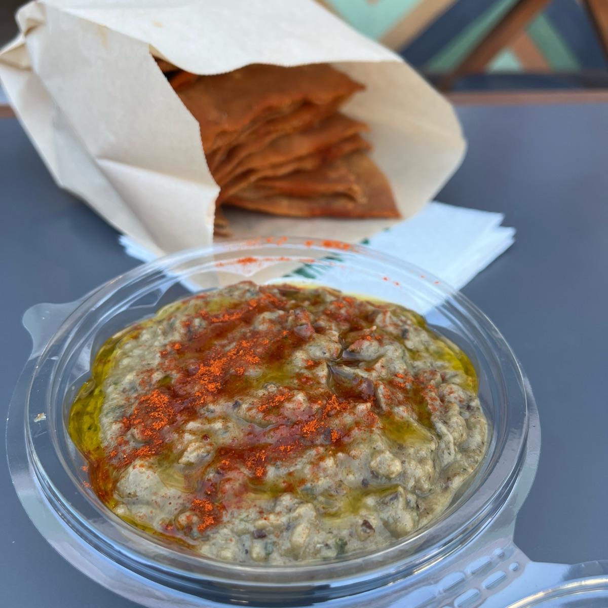 🇬🇷🍆This #babaganoush made from #aubergine was original served with a very generous portion of Arabic pita chips. It was €6.50 but we could barely finish the tabbouleh and babaghanoush between us. It was so much food. It’s a fast food place with indoor and outdoor seating and very helpful friendly staff. Loved this place. #greekvegan #vegangreece