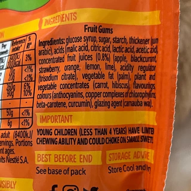 I got these Rowntree’s fruit gums from Sainsbury’s on special for £1.