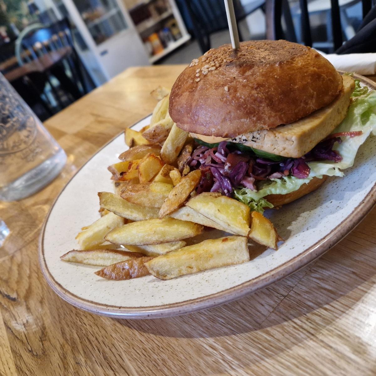 This burger contains marinated tofu, lettuce, vegetables and sauces. It also comes with a sizeable portion of homemade fries. The taste combination works really well, and this is without a doubt my favourite meal at Holy Cow!