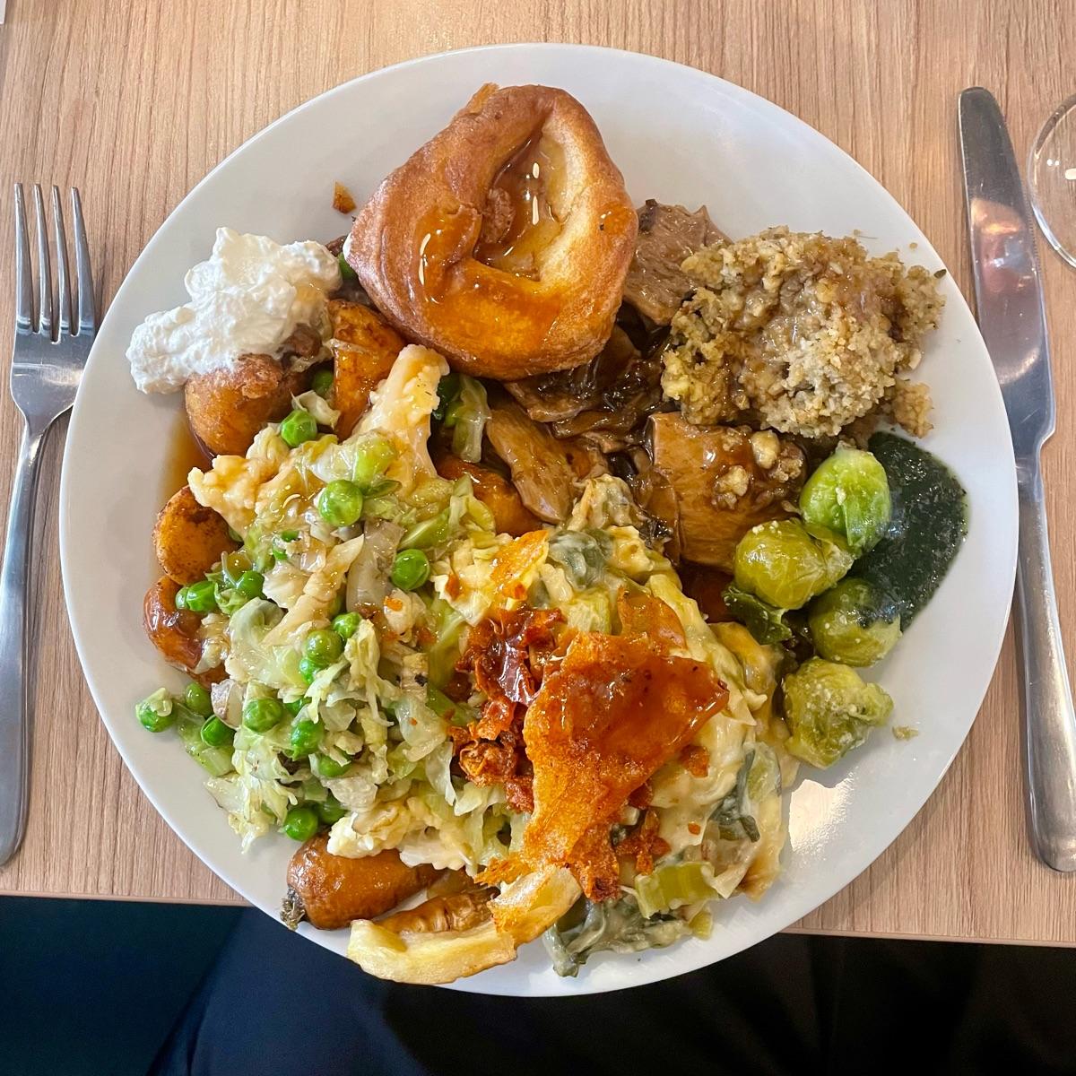 🌱 🇬🇧 🤤 ⭐ Oh my god. Finding a carvery in London is hard enough, never mind a fully vegan one and wow, it was amazing. I’ve added the menu too so that you can see the amazing sides (creamy leek, cauli cheese, pork scratching?!!) and a Yorkshire pudding!