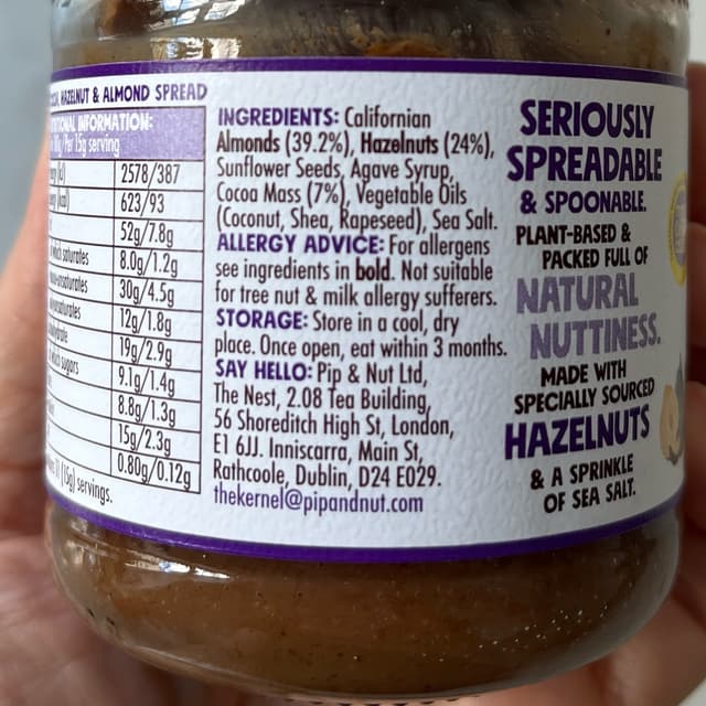 🌰🍫 New #chocolate #hazelnut #spread to rival the new #plantbased 🌱Nutella. A friend was complaining that the Nutella has palm 🌴oil but this one doesn’t, woot! We did a tasting with three different brands. This is more of a nut butter and it actually has more almonds than hazelnuts. It feels a bit false advertising then. While this is nice it doesn’t make my fussy French partner dream. He’s still plowing through the Nutella every night. I hope he’ll eat this eventually. I found this at Sainsburys on sale for about £2.50. Then I saw they have bigger plastic tubs of it now too. #nutbutter #almond #bcorp