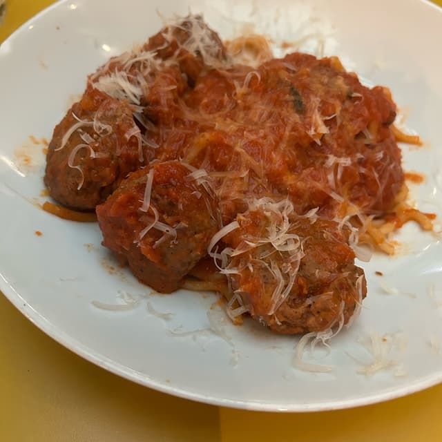 Course 3 of the meal - comfort food, veganized. I savor the taste of spaghetti with tomato sauce along with chunks of vegan protein.