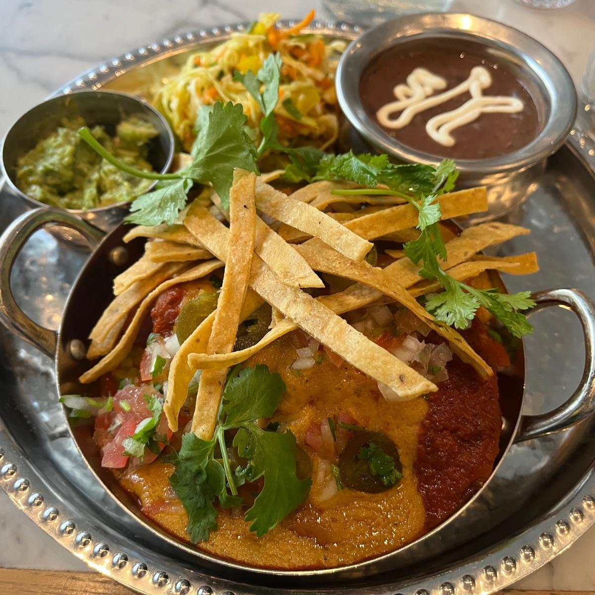 🇲🇽 You don’t ever see a vegan version of #mexican style #enchiladas in Europe so I had to jump at the opportunity to try these. It was a massive portion and easily could have been shared by two which makes the £19.90 price tag easier to stomach. My only critique is it was full of #jalepeno. 🌶️The slaw was a jalepeno slaw and then there were more jalepenos on top of the enchiladas which I took off. It was fun to have the crispy crunchy tortilla slices to contrast the creamy🫘 #refriedbeans #guacamole 🥑and enchilada full of smoky pulled protein. It had a cheese sauce over the top too. Mildred’s is a 🌱 #veganrestaurant chain in London. The food is exceptional so I’d love to try everything on the menu. It’s a bit pricey but the place is beautiful with great service. They have a Korean fried Chick’n burger to die for. I’ll be back for sure and really need to try more of their menu. #saveveganrestaurants