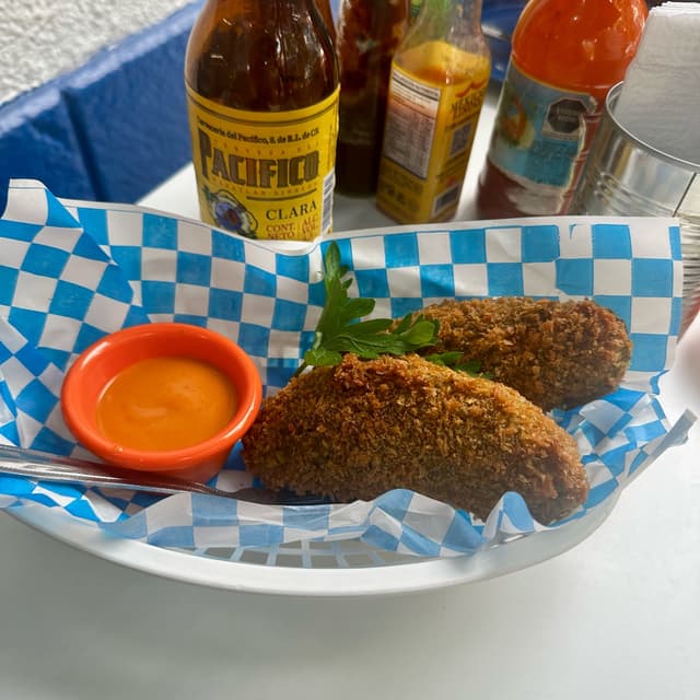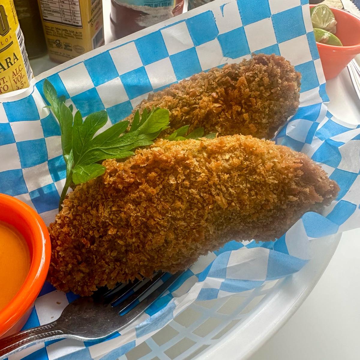 Este platillo es relativamente nuevo y les quedó riquísimo también. Son crujientes filetitos de no pez 🐟, no se sabe de que son por que nos dijeron que era “receta secreta” pero nos supo como a un tipo puré de papa con alga y otros ingredientes que dan ese sabor a mar 🤩 Doraditos por fuera y crujientes por dentro. Les va muy bien unas gotas de limón y su veganesa de chipotle. Excelente creación 👍🤤 #veganseafood #veganfish #leavethefishinthesea #fishesfeelpain #ifitsnotveganitsnotfood