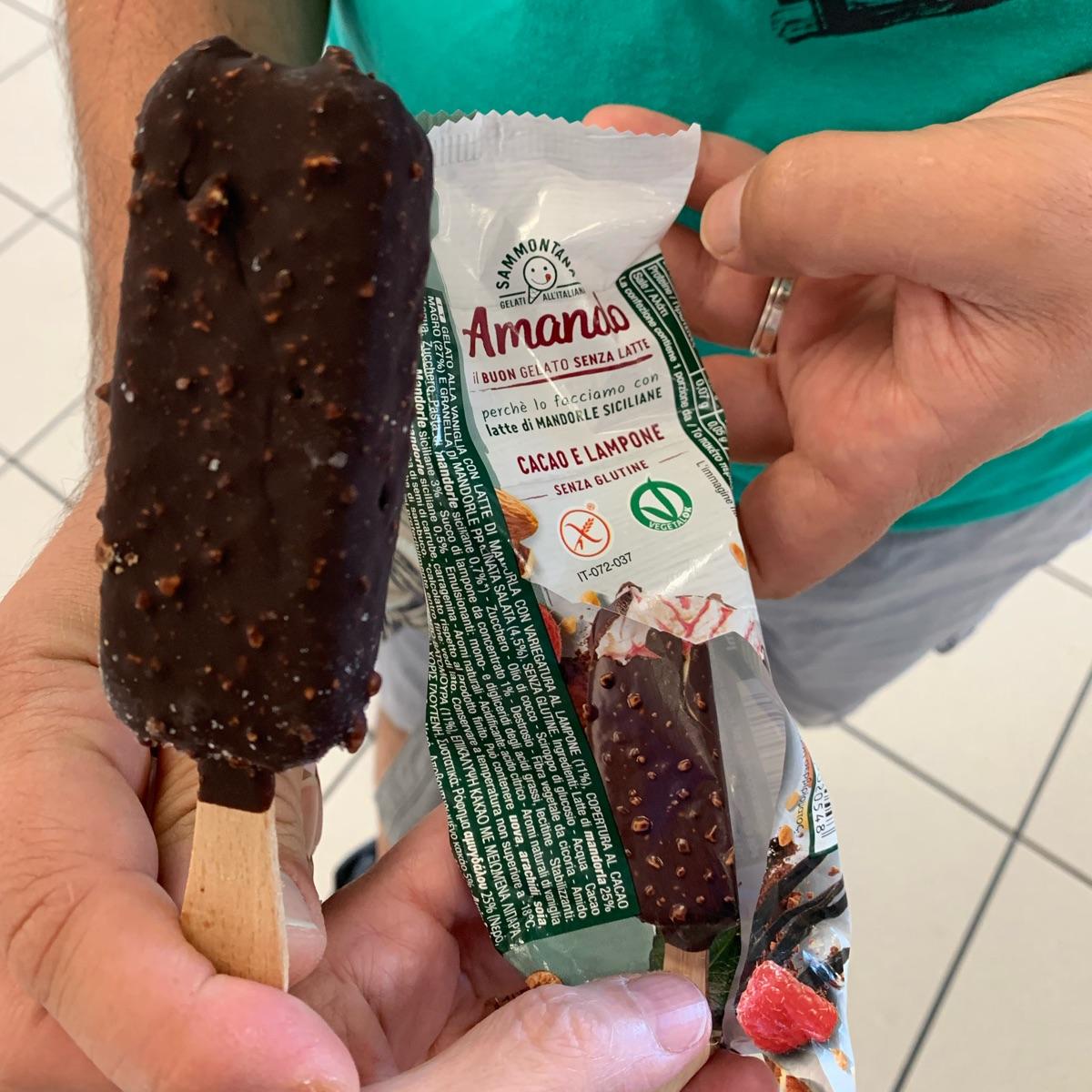 Pagato un occhio in autogrill (3.50€) e più non capisco perché fanno i gelati per vegani piccoli da dieta dimagrante!!!! Percheeeeeeee’?????!!!! Comunque il cioccolato che ricopriva la povera vaniglia con un paio di pennellate di lampone, era davvero troppo troppo amaro.