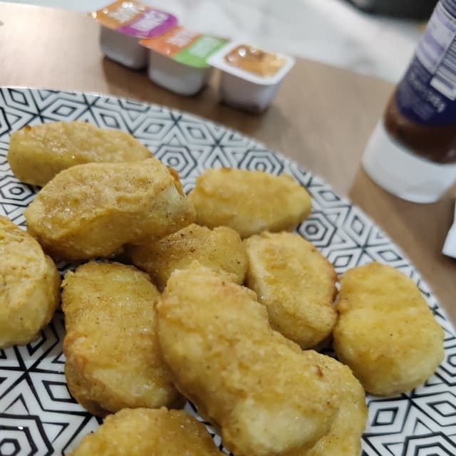 Not sure what #bocconcini means in Italian, but I hope #nuggets, as for me those were #vegannuggets. They have quite a good consistency and have a really nice mouth feel and taste great. They could have been a bit more crispy, but I guess I should have left them in the air fryer a bit longer, as they were quite oily. Left them already in a few more minutes tho. Maybe it's just the dough that is not crispy enough 🤔