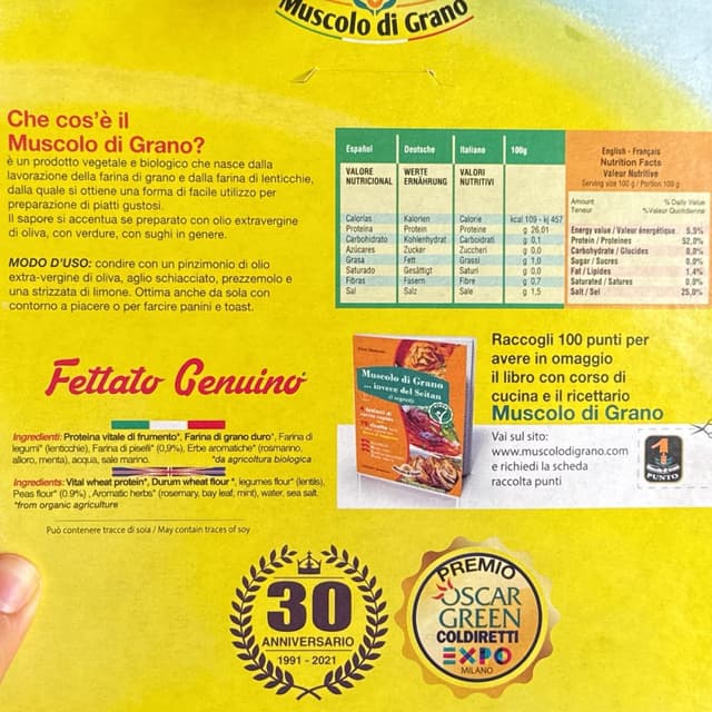 Sa proprio di seitan, l’ho assaggiato dentro un toast e non si sentiva tanto. Da solo con una spruzzata di limone (come consigliato) è più godibile, ma forse non lo ricomprerei. Unica nota fastidiosa: non è assolutamente come la foto.